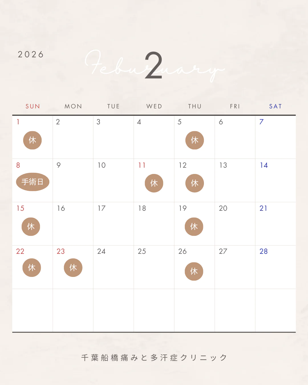 2月の休診日をお知らせいたします。